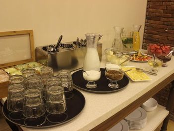 В номере не было чашек. Есть чайник и стаканы, но нет чашек. Пришлось идти в бар и просить.