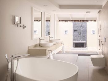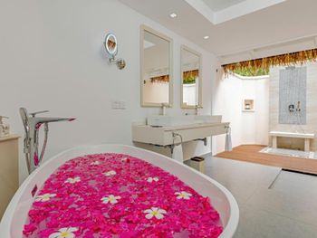 Расположение отеля очень удобное, 20 мин на спидботе от аэропорта. Встретили радушно, есть русскоговорящие помощники. Виллы есть разные, на любой вкус. В вилле чисто и убирают два раза в день, полотенца меняют ежедневно. Пляж вокруг острова хороший. Территория чистая, ухоженная, зелёные насаждения и цветы везде, отличный бассейн. Много разных активностей, СПА, спорткомплекс, водные виды спорта, дайвклуб. По территории возят на багги, что очень актуально в жару, среди дня. Питание - есть четыре ресторана, основной - так себе, однообразно, рыбных блюд нет вообще, несмотря на то, что океан вокруг. Японский тоже не вдохновил, суши обычные, сашими правда был отменный! В рыбном не понравилось, как оказалось свежей рыбы нет вообще, всё только из заморозки, качество соответствующее. Итальянский порадовал едой, было вкусно, но цена удивила.