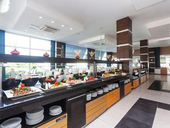 Гостям Karya Family Resort Hotel All Inclusive предлагается завтрак «шведский стол».
