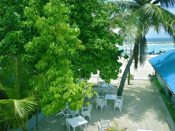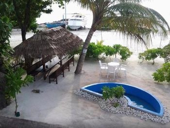Поскольку я бронировала номер только с завтраком, дополнительно заказывала у них ужин. Еда была вкусная, порции большие. На двоих мы заказывали суп и 1 порцию второго блюда (в основном, рис), цена составляла 250-260 руфий. Завтрак тоже был достаточно плотный, обедать даже не хотелось.