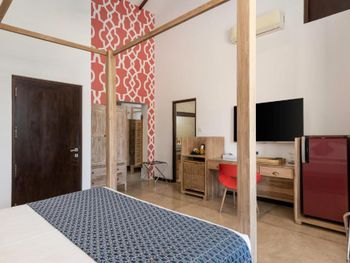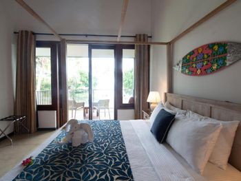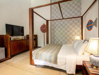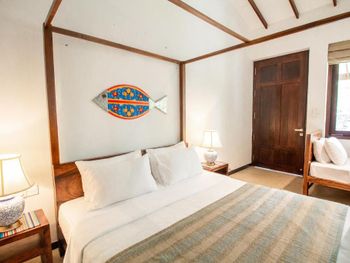 Небольшой отель, с выходом на пляж, не смотря что рядом Мариотт довольно тихо и спокойно, Стильный интерьер в номере, удобные кровати.