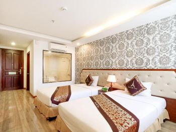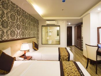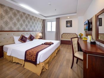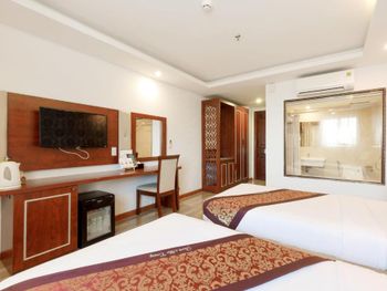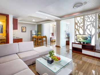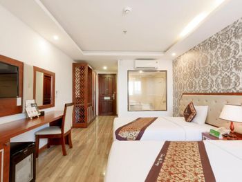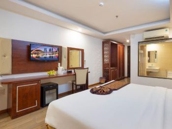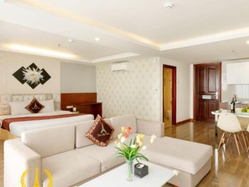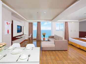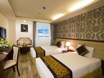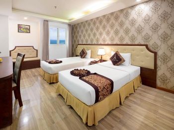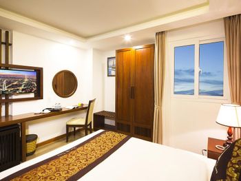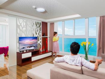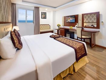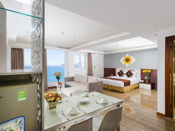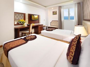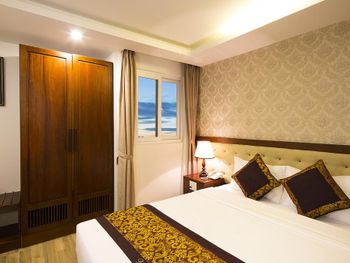 Местоположение шикарное, номер супер (апартаменты-студия с видом на море). Рядом все необходимое. Обменный пункт рядом и довольно хороший курс (для сравнения в ювилирном мы обменивать доллар донге по 2 740 000 (ноябрь 2025, работает с 8.00), в Сокровище Анкгора (минут 10 от отеля работает с 9.00)-2 749 000. Рядом хорошее кафе с вкусной едой Quan son и демократичными ценами. Пляж через дорогу. Автобусы 23 и 5-2 до основных достопримечательностей напротив. Персонал, не говорит по-русски, но общий язык все равно найдёт. По завтракам не скажу не брали. Если приехали раньше времени заселения, можно оставить вещи на ресершене и спокойно гулять по набережной, пляжу, городу. В номере убирались по требованию, не прям вау, но хорошо.