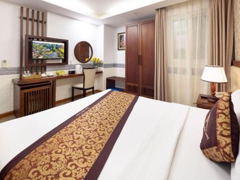 Отношение администрации (офиса) отеля к своим клиентам. У жены на следующий день после заезда был юбилей ( заранее уведомил администрацию), но к сожалению никакой реакции не последовало (ни комплимента, ни скромной корзиночки с фруктами). Завтрак на вынос (ранний выеэд на экскурсию) был просто нищим (самый худший из всех, кто ездил на экскурсию). Не понравился случай с заменой карточки (пропуска) от номера -девушку , которая заходила в лифт прижало дверью лифта руку, в которой находилась карточка (было еще 2 свидетеля). Карточка треснула, на ресепшене потебовали 150 000 донгов (6$), хотя стоимость Proximity Card меньше 1$. Звонки в 4 утра в дверь номера неадекватных иностранцев.