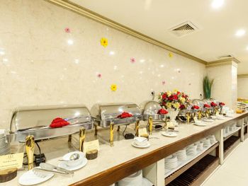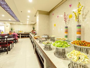 Завтрак, уж насколько мы непритязательны - скудный. Заканчивается в 9.30 утра, но уже в 9 еды почти нет. Рис, макароны, яйца, блины, какое-то мясо, паровые овощи, но всё невкусное. При таки изобилии фруктов на улице - в отеле они тоже невкусные или недозрелые
