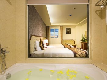Букашки живущие у нас в номере в матрасе, персонал отказался менять матрас, меняли только постельное белье, отвратительные завтраки, бассейн назвать бассейном язык не поворачивается, зеленое Болотов с мутной водой, отсутствие пляжных полотенец ( то есть а то нету, или приходи в 8 утра и жди), горячую воду выдают только требованию!!!, карточки юнионпэй не работают! Окно выходит на вен трубу и кондиционер, стиральная машинка пачкает белье 🤦♂️🤦♂️