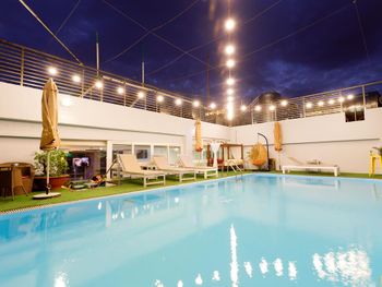Из плюсов, уборка каждый день, но довольно поздно. Завтраки норм, три вида фруктов ежедневно. Блины, свежий хлеб, яичница)) вид на море посредственный, скорее на крыши соседних зданий. На пару ночей можно, но лучше подыскать другой отель((