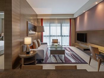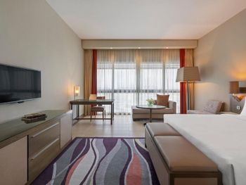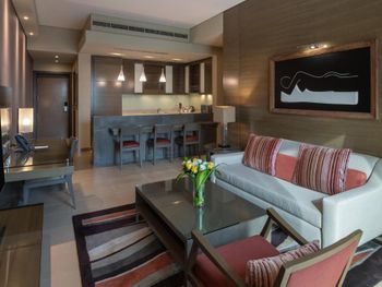Adjacent to Khalifa Park and near Sheikh Zayed Grand Mosque and ADNEC, Park Arjaan by Rotana is part of the Park Rotana Complex offering furnished and fully equipped hotel apartments in Abu Dhabi. With elegant décor and spacious layouts, the 172 fully furnished and serviced hotel apartments include studios, one, two and three bedroom suites. Each features an LED television, kitchen with a stove, fridge and other appliances.
