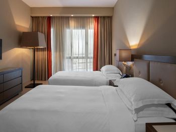 Sharing facilities with the 5 star Park Rotana Hotel, the property features five different dining venues serving a wide range on international cuisines and a great selection of beverages. Onsite leisure facilities at bodylines fitness and wellness club include an outdoor swimming pool, sheltered children’s pool, play area, floodlit tennis court, steam room and sauna. Yas Island, Abu Dhabi’s popular leisure hotspot can be reached with a 20 minutes’ drive while the Abu Dhabi International Airport is 30 minutes away. Complimentary Indoor parking is available for all guests.