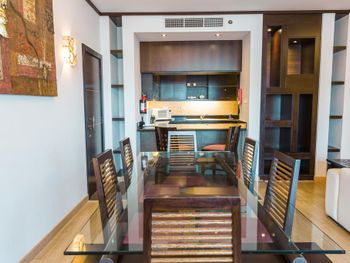 Система дала забронировать номер на 4 человек ( номер с 1 спальней). Кровать в спальне довольно большая, но диван в зале не раскладывается, а больше никаких кроватей в номере нет и принести доп кровать отказались, т е по факту номер на 3 человек. Посуда и кухонные принадлежности в очень ограниченном количестве ( например, у нас было 2 чашки и 1 вилка на всех. Номера несколько старее, чем на картинках
