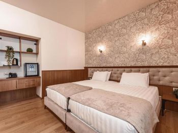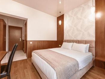 Новый или отреставрированный отель прямо на краю великолепного парка, питание либо завтрак либо завтрак-обед, что существенно дешевле, чем если брать только завтрак, а потом добавлять обед. Питание шведский стол, не Турция конечно, но очень неплохое, супы и котлеты очень вкусные. Мы снимали семейный номер с ванной в одной из спален, прием ванны перед сном очень расслабляет. Хорошим матрасы и отличное белье. Мы обязательно вернемся!