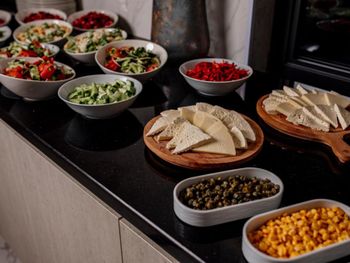 У нас был включён и завтрак и обед. Выбор есть, хотя и небольшой. На обед два вида супов, два мясных блюда и гарниры, салаты и нарезанные овощи, оливки. Выпечка была, десерт, чай, кофе, сок.