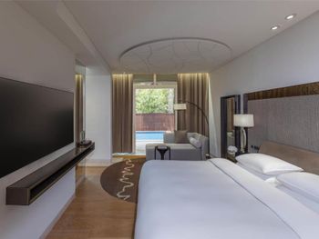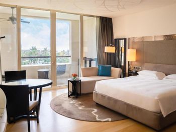 Дорогой номер с окнами на море, при этом с 4 утра грохот посуды под балконом, накрывают завтрак, спать с открытым балконом невозможно. При проведении конференций в отеле приходится ходить в обход, так как перекрывают твой выход на пляж, это несправедливо и не удобно для гостей, которые за это заплатили. Невозможно заказать еду из какого-либо ресторана, так как там частное мероприятие.