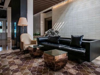 Интерьер в отеле несовременный- тёмный и удручающий , все пошарпонное, уставшее.