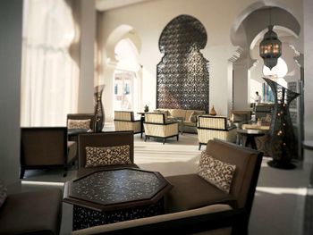 Староватый отель, несвежее ковровое покрытие, требующее замены, и старомодный дизайн комнат в арабском стиле. Обилие коричневого и необходимость ремонта.
