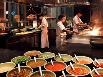 В этом роскошном курортном отеле работают кафе и рестораны мирового уровня. В ресторане Noepe можно заказать морепродукты и полюбоваться великолепным панорамным видом. В ресторане The Thai Kitchen на 3 открытых кухнях тайские повара готовят традиционные тайские блюда. В современном ресторане международной кухни Brasserie du Park можно заказать пивные закуски и пообщаться в оживленной обстановке.