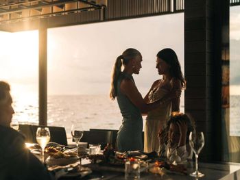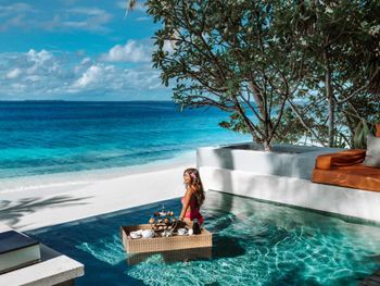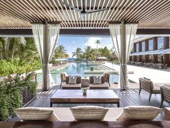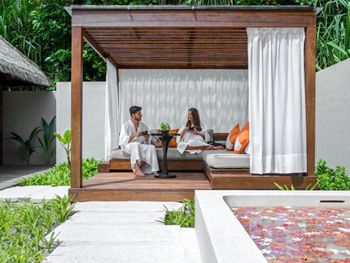 При отеле открыты 2 стильных тематических ресторана, Dining Room и Island Grill, где подают блюда интернациональной кухни. По запросу осуществляется доставка еды и напитков на виллу.