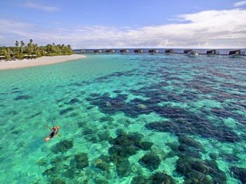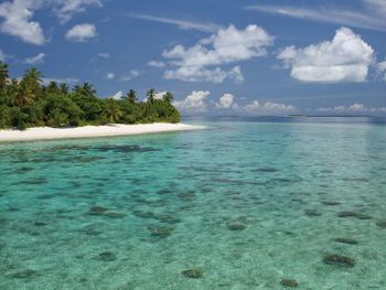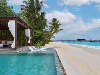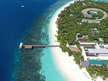 Очень красивый уединенный небольшой зелёный остров с очень красивым пляжем и домашним рифом с разнообразными подводными жителями. Невероятно приветливый и отзывчивый персонал. Нас встретили ещё в аэропорту на выходе проводили в зал ожидания, потом отвели зарегистрироваться на внутренний рейс долететь до ближнего от отеля острова и там тоже встретил представитель отеля посадил на машинку и отвез к лодке, а на лодке нас уже быстро за минут 25 домчали до острова. Наша небольшая вилла была на пляже с красивым выходом к океану. Убираются на виллах 2 раза в день, что очень классно. Еда хороша, но нет большого разнообразия, думаю это связано с тем что остров находится далеко и маленький и Вилл на нем мало, что плюс, потому что ты чувствуешь что будто один на этом острове. Кокосы на острове очень вкусные. Отличный вариант остановиться на несколько дней и уединиться, поплавать в рифе среди кораллов и посмотреть на подводных обитателей. Цены на экскурсии высоковаты, но опять же думаю что это связанно с расположением. Мы их не брали потому что в домашнем рифе можно плавать и любоваться часами. Дают бесплатно маски и ласты. Гидрокостюм стоит 10 дол в сутки. Брали гидрокостюм потому что солнышко очень сильное и в воде особенно можно сгореть очень быстро. Либо брать с собой закрытую одежду для плавания. Погода была супер. Дождь шел всего два раза, один раз ночью долго и один раз утром но кончился быстро. В общем эти 5 дней пролетели очень быстро и прекрасно. Потом у нас был другой резорт на севере Мальдив. Что тоже очень порадовало отели сами между собой обо всем договорились и распланировали максимально удобное время когда нас отправлять и забирать, что сделало наш отдых более беззаботным.