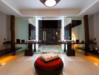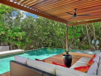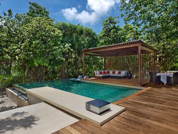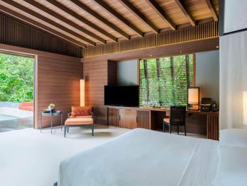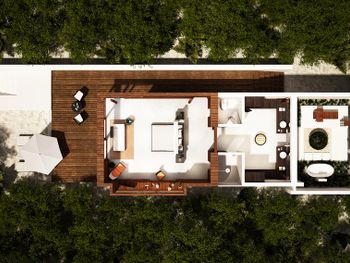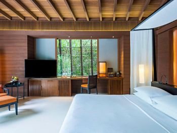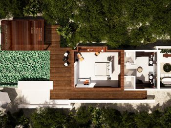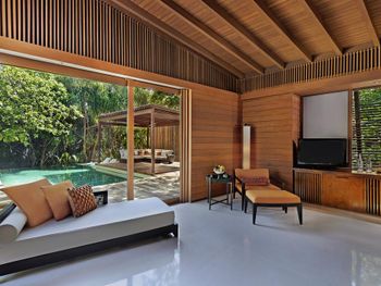 Виллы окружены тропической зеленью. В распоряжении гостей ванная комната открытой планировки с живописным видом. В числе удобств собственная терраса с небольшим диваном, медиа-центр и телевизор с плоским экраном.