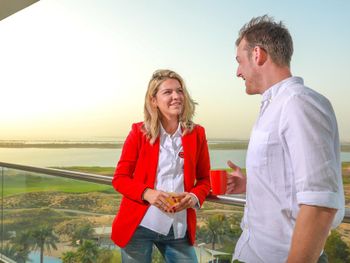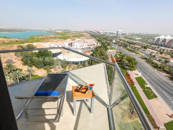 Близко к аэропорту — на случай, если Абу-Даби является промежуточной точкой в путешествии. Легко добраться до Феррари Парка и WB.