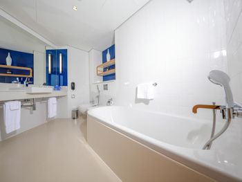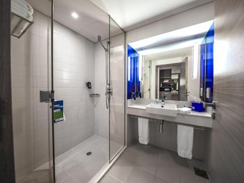 Мы бронировали номер с одной большой кроватью. При заселении нам сковали что такого номера нет и заселили в номер для инвалидов. «Отлично» провести время 14.02 на день влюбленных в номере для инвалидов.