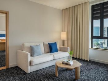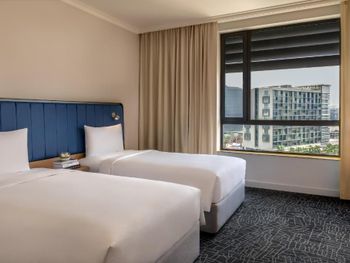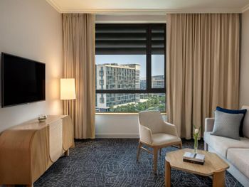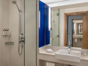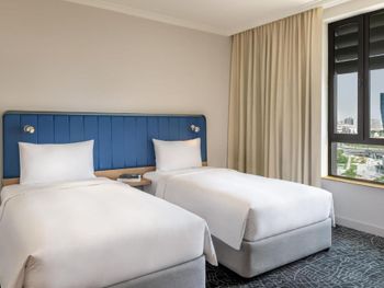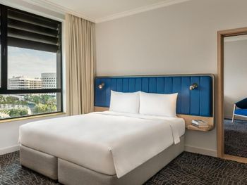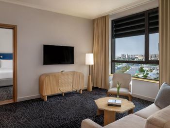Прекрасный отель. Очень просторный номер, удобные кровати, были 2 душевые (много принадлежностей), 2 балкончика (можно посидеть попить чаю с красивым видом). Выбор чаев впечатлил. Наивкуснейший и разнообразный завтрак. Есть небольшой бассейн, ресторан прям в отеле помимо зоны для завтрака, но мы там не были, оставались на одну ночь, т.к. отель недалеко от места проведения концерта на который собственно предстояло сходить. Ваши вещи достааят прямо в номер, прекрасный молодой человек помогал с этим. И да, очень удобно что транспорт ходит прям до отеля.