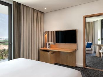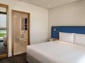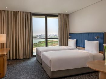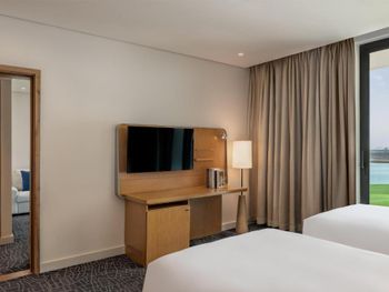 Размещение семьи в двух смежных номерах, очень удобно. Можно пользоваться бассейном этого отеля и бассейнами Radisson Blue. В номерах у кроватей забавная многоцветная подсветка. От отеля по расписанию отходит бесплатный автобус по маршруту Отель-Radisson Blue-пляж- Yas Mall и обратно. На ресепшн можно получить ваучеры на бесплатное посещение пляжа (лежаки и полотенца). В пяти минутах на такси доступны все развлечения острова.