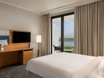 Очень большой люкс с огромным балконом, нам дали угловой номер! Читала в отзывах, что номера уставшие, люкс точно не уставший, рекомендую! Прекрасные завтраки, оба дня было разное меню по горячим позициям. Пользовались соседним бассейном Рэдиссона, он на солнце и подогревается, в ноябре это важно)) всегда есть такси! Все супер, цена-качество ??Ресепшн уже отремонтировали. Трансфер не нашли, такси по острову Яс и до аэропорта стоит 15-20 дирхам