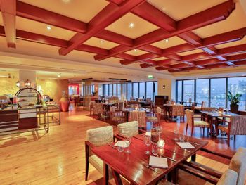 По моему мнению, завтрак был сытным, вкусным, стоил своих денег. Вид из окон кафе замечательный. Около отеля много магазинов, кафе, недалеко торговый центр.