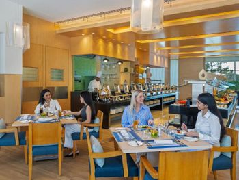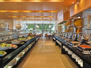 В ресторанах отеля подают разнообразные блюда континентальной, азиатской и арабской кухни. Напитки можно заказать в пабе, специализированном ресторане и баре у бассейна.