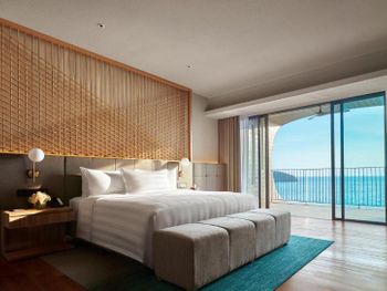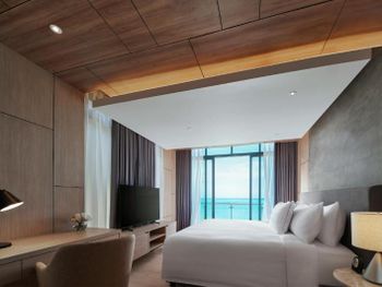 Удобное расположение, собственный пляж, большая кровать и просторный номер.