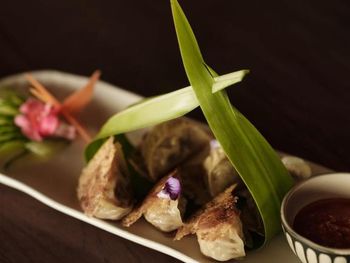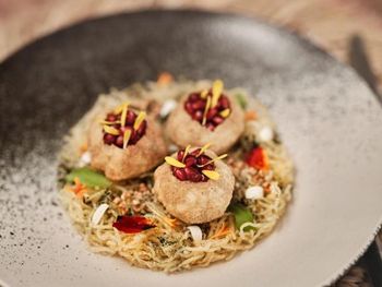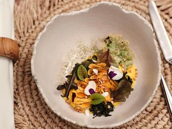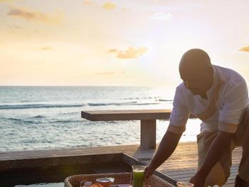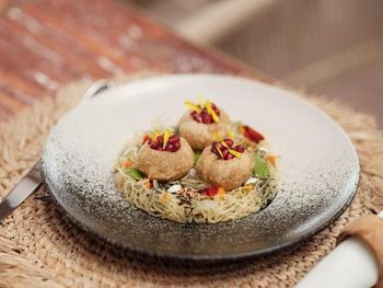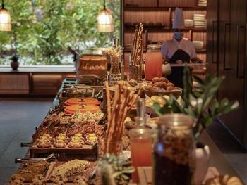 Для гостей сервируется завтрак «шведский стол», континентальный завтрак и полный английский/ирландский завтрак. При Patina Maldives, Fari Islands работает ресторан, где подают блюда кантонской кухни, блюда греческой кухни и блюда индийской кухни. По запросу для гостей приготовят вегетарианские, безлактозные и халяльные блюда.