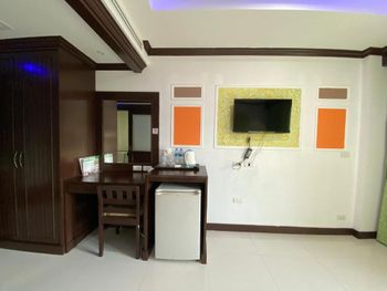 Отличное местоположение в самом центре Патонга. Рядом рынок, торговый центр, все магазины. До Банглы 5 минут, 10 минут до пляжа. Удобно вызывать такси для поездок на другие пляжи. Отличный напор воды в кранах! Квадратура номера вполне подходящая для двоих. Есть столик и стул, шкаф и сейф. Мест хранения достаточно. Отдельно пространство для чемоданов.