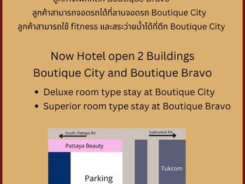 Отель находится в 650 метрах от популярной улицы Уокинг-стрит, известной своими ночными заведениями, в 1,8 км от торгового центра CentralFestival Pattaya Beach и в 2,3 км от пирса Бали-Хай. Поездка от отеля Boutique City Pattaya до международного аэропорта Суварнабхуми займет 1,5 часа.