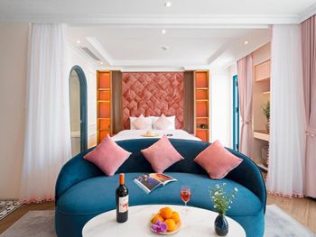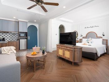 Немноголюдный отель. Не было наплыва туристов. Довольно тихо, комфортно. Очень уютный номер. Огромный телек с китайским софтом. Большая удобная кровать. Приятное кондиционирование. Большие шкафы, много места для хранения.