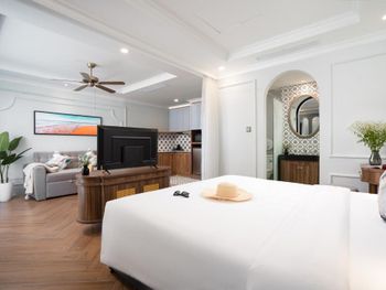 Жили неделю в этом отеле, выбрали самый большой номер и не зря, он без соседей за стеной, поэтому было тихо, высыпались шикарно) номер хороший большой, телек огромный, есть ютуб, кондиционер 5+, уборка каждый день. Вид на море, море видно все норм, по середине еще отель, но море видно)Персонал милый, отзывчивый. Можно снять байк прям у них 150к, сразу без залога что удобно, паркинг подземный