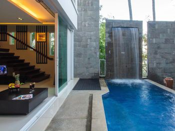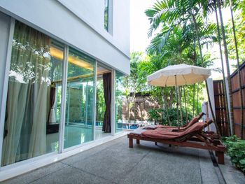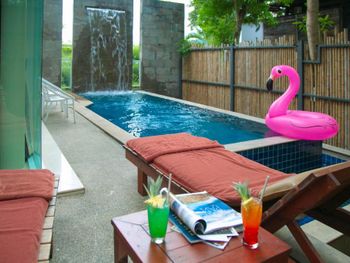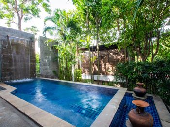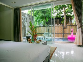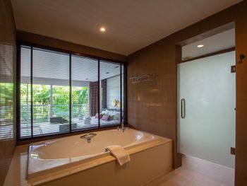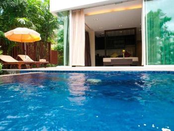 Бесплатно повысили категорию номера и заселили в виллу с личным бассейном. Вила прекрасная, одна огромная спальня на втором этаже и одна поменьше на первом. Есть ванная, душевая, душ под открытым небом. Бассейн чистят каждый день. Территории на вилле нет, но первый этаж с большими панорамными раздвижными дверьми. Удобно проводить время у бассейна