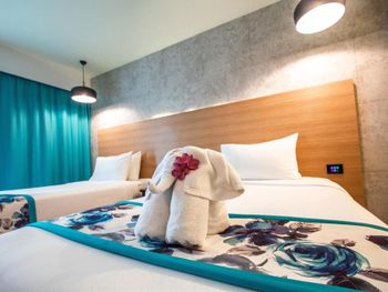 Началось всё от входной двери, можно сказать. Прилёт у нас был поздний, часам к 12 ночи приехали, встретили нас на ресепшене 2 недовольных парня. Долгий процесс оформления документов при заселении, но это нас не огорчало, мы прилетели в Тай и были очень счастливы. Первый звоночек прозвенел тогда, когда мне перед выдачей ключа от номера подсунули лист с «местными правилами отеля» в виде рекомендаций: Воду выключать, Свет выключать, Кондиционер лишний раз не включать. В общем чувствуйте себя как дома, но не забывайте, что вы в гостях! Далее мы зашли в номер, который находится на 3 этаже, а там запах как в подвале, сырость вперемешку со старьём… Кондиционер ситуацию никак не изменил, они там старые и слабые. Поскольку были уставшие, легли спать и так. На утро, вместо шикарного вида на море, увидели деревья и провода. Отель старый, вонючий, куча насекомых, территория ушатанная, персонал грубый. Выехали после первой ночи. Деньги за оставшиеся дни нам не вернули, сказали обращайтесь в Букинг, хотя платил наличкой. В Букинге дали ответ, что деньги вернуть не против, но нужно чтобы отель подтвердил тот факт, что мы уехали. Но отель почему-то этого не подтверждает! Ещё раз съездили через пару недель, но решить по прежнему ничего не получилось. В общем не рекомендую данный отель, деньги платишь хорошие, а взамен получаешь хамство и обман!