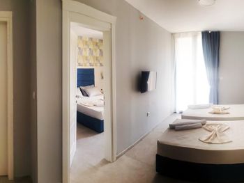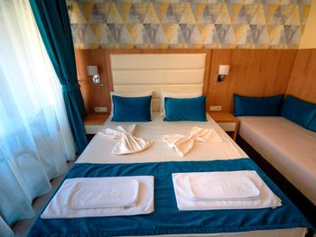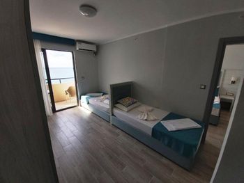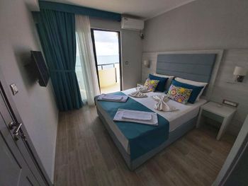 приехали на день раньше без проблем заселили переоформили можно было день доплатить но так как автобанов нету в стране 200 км по мелким дорогам ехать мы не стали продлевать как я уже говорил отель не работал полностью номеров хоть отбавляй даже по просьбе жены поменяли номер с нулевой на третий этаж и с видом на море хотя в заказе было с видом на территорию или бассейн номер был заказан