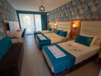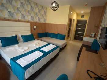 Сервис отеля не соответствует заявленным 4 звездам, я бы оценил в твердые 3 звезды. Уборка номеров плохая. Полотенца, туалетные принадлежности и прочие обязательные вещи приходится обращаться что бы предоставили. Электрочайник, чашки так же просили предоставить и получили только два стеклянных стакана на четыре человека. Пляж вообще не чистят, он весь в окурках и мусоре. При заезде был предоставлен номер хуже, чем бронировался.
