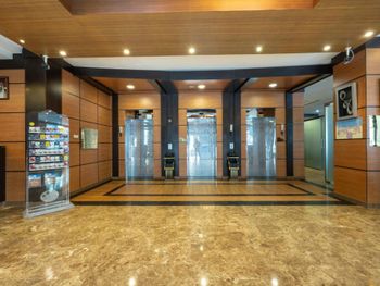 Из трех лифтов активно рабоатет только один по своему какому-то особому алгоритму, в итоге можно пару минут ждать лифта на этаже - это сильно раздражало, учитывая, что здание всего 7 этажей.