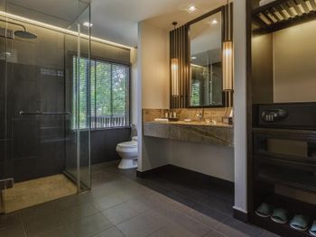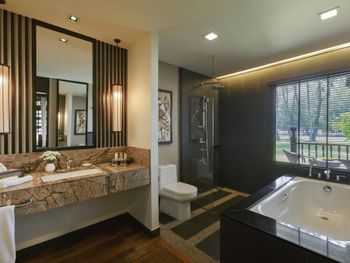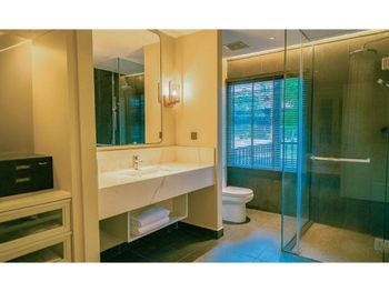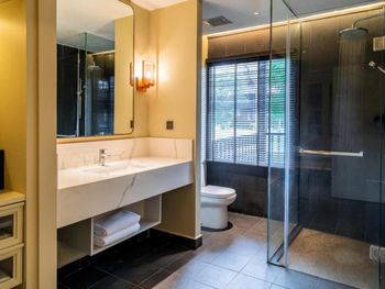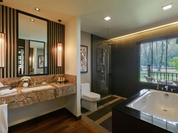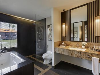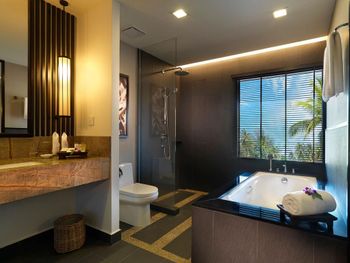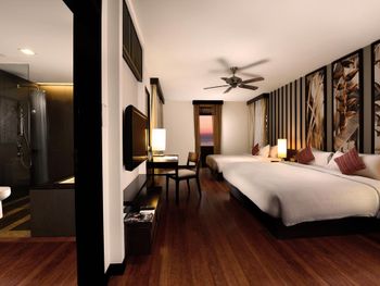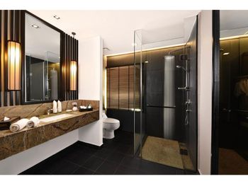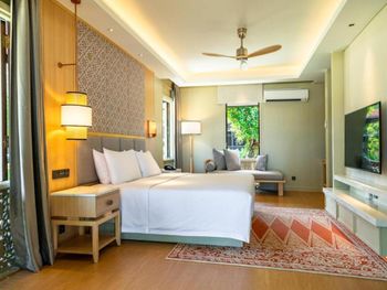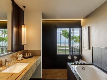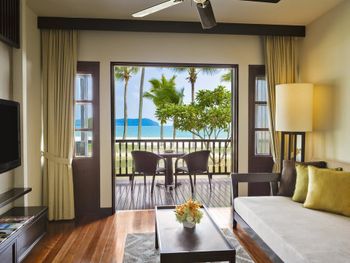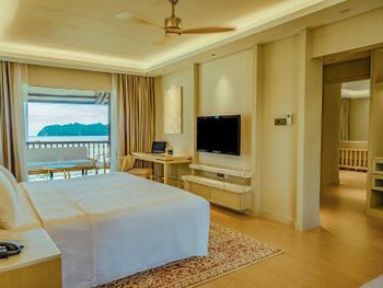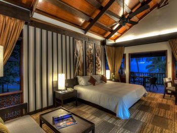Мы брали не самый простой номер, а какой-то улучшенный больше 45 кв.м с видом на море. По картинке подумали это будет шалле. Это как бы так и не так))) Это дом, но он поделен на 4 номера: 2 на втором этаже и 2 на первом. Мы жили на втором, приятно что высокий косой потолок. На этом приятности заканчиваются. Почему-то в номере было ковровое покрытие - не самое приятное, понятно что песок полностью с него убрать трудно (спасали одноразовые тапочки). Гардероб располагался в ванне, что тоже не очень удобно. Если шумные соседи (а это наш случай), а у вас чуткий сон - сна у вас не будет вообще))) Вот в одну ночь наши соседи расшумелись очень сильно, мы позвонили на лобби, сотрудник отеля пришел разбираться, как итог-музыку выключили, но громкие разговоры никто не отменял. И я не так обижена на соседей, я понимаю, что для них это такой вид отдыха, но слышимость будто они в нашем номере тусят и что-то обсуждают. Изоляция звуковая = 0. Еще интересная ситуация с залогом. При въезде сняли залог 500 рингитт. При выезде выдали счет на 395, то есть разницу должны вернуть. Попросили еще раз карту для этого. Мы выписались, спокойно уехали. Вечером смотрю - они еще дополнительно сняли 395 рингитт. То есть 500+395 и ничего не вернули)) Пришлось писать в отель - "Вы что, вы же вернуть должны, а не дополнительно снять." Они сказали - вы проверьте в своем банке, мы вам должны были разницу уже вернуть. Я пошла разбираться с банком, там ситуация такая: 500 заблокировано, 395 вообще снято как покупка. И по поводу 500 банк отеля никаких указаний им не присылал. Но мой банк разблокировал, но предупредил, что чеки нужно хранить, так как ситуация еще в подвешенном состоянии и их смогут заблокировать опять. Вот такая непонятная ситуация с залогом. Так что при въезде просить этот залог сделать минимальным или вообще без него.
