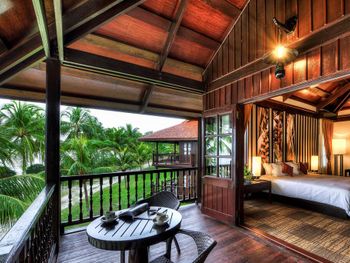 Отличный отель в малайзийского стиле. Тихий, уютный и спокойный. Хороший пляж. Территория большая, номера лучше брать шале 3-10, близко и к пляжу, и к лобби