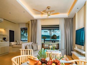 Расположение отличное. Отель находится сбоку от главной торговой и ресторанной улицы с магазинчиками и ресторанами. Удобно со всех сторон - можно быстро дойти до «тусовки», или легко от нее спрятаться на собственном пляже отеля. Каждый вечер ходили до главной площади, выбирая по google maps разные рестораны. Посетили из этого отеля все достопримечательности, кроме sky bridge ( только по одной причине - наш следующий отель был совсем рядом). Пользовались приложением такси grab. В нашем случае вышло дешевле аренды машины. Жили в номере с видом на озеро, убирались качественно и ежедневно.