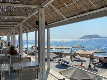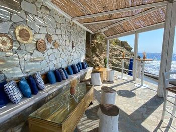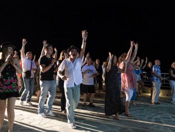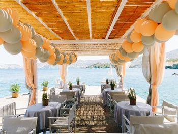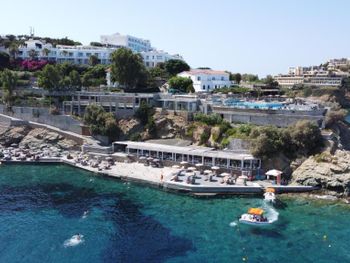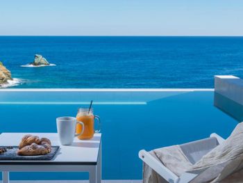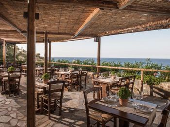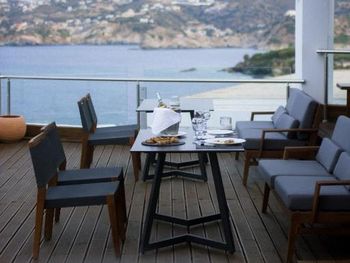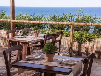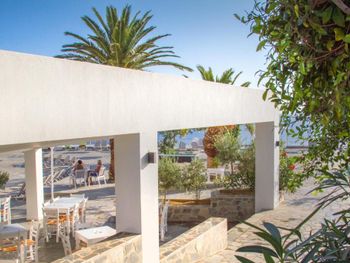 Заказывали ужин в местном алякарт в ночь лобстера, 50 евро с человека плюс 19 евро бутылка вина - не советую повторять, потерянные деньги, вкусным был только суп, в Ираклионе за эти же деньги можно поесть действительно вкусной еды, а десерт вам принесут бесплатно в качестве комплимента вместе с раки.