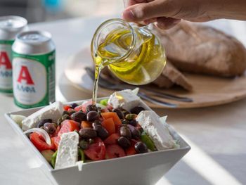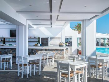 В ресторане сервируется «шведский стол» с блюдами критской, греческой и интернациональной кухни. Завтрак, обед и ужин подается в зале с видом на море и остров Диа в отдалении. В отеле работает 4 бара, где можно заказать напитки.
