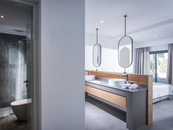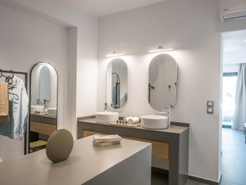 1: The word "subordination" has apparently never been heard of here. The cleaning lady allowed herself to enter the room when the hotel guests were "sleeping", walked through the whole room to put water in the refrigerator, even though she was asked not to enter the room in English. But the cleaning ladies in this hotel do not speak English at all. The dish cleaners in the dining room, apparently due to the lack of knowledge of any even basic English, allowed themselves to go up to the table where we have been dining and knocked on it, saying something in Greek in a rude tone with a displeased face. In general, any request such as pouring water or coffee is perceived as a favor, is done very slow and with the same displeased face. To get an espresso in the morning is a whole quest: you need to find a person who has a "clearance level" for the coffee machine, then water is added there for about 5 minutes, coffee is added, in the process the employee responsible for this can leave somewhere without saying a word, and all this with the same displeased expression on his face. Hotel staff - smile at least sometimes))