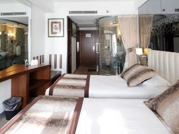 Отель ужас; четыре звезды как заявляет букин нет , нам даже работник отеля сказал что это три звезды, интернета фактически нет только если сидеть внизу в лобби. Были на новогодние праздники цена этого отеля совсем не соответствует условиям, завтраки ужас только куча хлеба; сыр и колбасные изделия старые заветренные как будто им сто лет, омлет даже омлетом назвать трудно., кофе нет. На улице было холодно и дождливо в номерах прохладно кондиционер на отопление не работал, воду в номер ставили через день или вообще не ставили надо выпрашивать. Обслуживающий персонал не совсем приветливый . Отель даже врагу не посоветую, лучше на 200 метров дальше от центра поселиться.