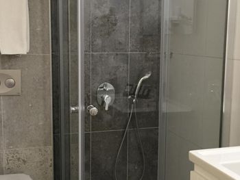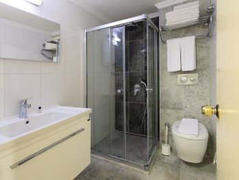 Не хватает полочки в ванной. Некуда положить умывальные принадлежности. Раковина очень маленькая. Душевая кабина протекала. Постоянная лужа около унитаза. Европейцы курят даже на детской площадке и в ресторане, несмотря на то, что за соседним столиком дети. Официанты сами приносят пепельницы.