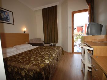 Приветствую! Отель понравился, уборка в номере каждый день, номера приличные. Территория не большая, три корпуса, бассейн и ресторан рядом. Завтрак, омлет салат мюсли и тд. Ужин был вкусный , пару основных блюд, гарниры, салаты , фрукты выпечка. В отеле как и в самом Олюденизе примерно 70% иностранцев. До моря 3 минуты. Валюту лучше в отеле менять у них курс лучше. Для сравнения в прошлом году отдыхали в соседнем отеле San city, территория там больше, питание все включено, но обеды у них не всегда были вкусные, в итоге часто ходили кушать в кафе. Я думаю за эти деньги это отличный отель, рекомендую.