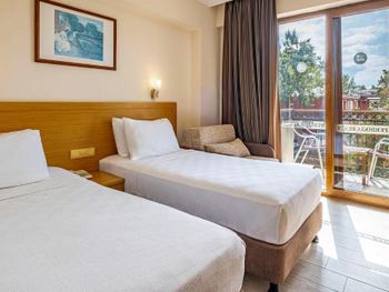 Хорошее место расположение отеля. Уютные номера, бассейн и бар на территории отеля. Великолепный завтрак и ужин! Доброжелательный персонал. Рядом центральная улица Олюдениза с магазинами и ресторанами. До пляжа идти около 7 минут.